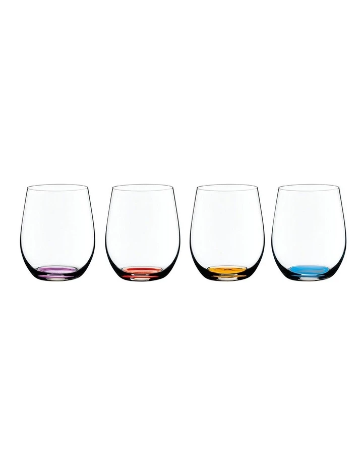 This set contains 4 pieces O Wine Tumbler Happy O Vol 2. In 2017 RIEDEL expanded the existing collection by four more colours: azure-blue, violet, cinnabar red and orange. The handy machine-made softdrink glass of the space-saving glass collection O Wine Tumbler spreads a good mood with its stemless design and the colourful base. The innovative design makes it less susceptible to glass breakage and easy to put into the dishwaser. O is the ideal glass for everyday use and for every occasion. It is fun, feels good to hold, looks trendy and it works! All RIEDEL glasses are dishwasher safe.