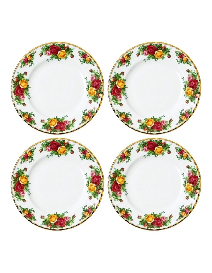 This Set of 4 20cm Plates shows the wonderfully nostalgic Old Country Roses pattern at its best with a distinctive border of the pink, yellow and red roses intertwined with green foliage on translucent fine bone white china, edged in 22 carat gold. The perfect way to make any meal time memorable, inspired by an English cottage garden, this set is presented in a signature fuchsia pink Royal Albert box as a perfect gift or a treat for oneself as a stylish, timeless addition to the home.
