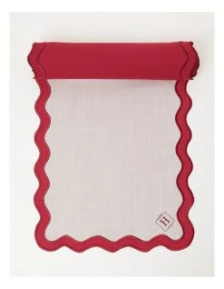 Heritage Florence Scalloped Edge Table Runner in Red and White