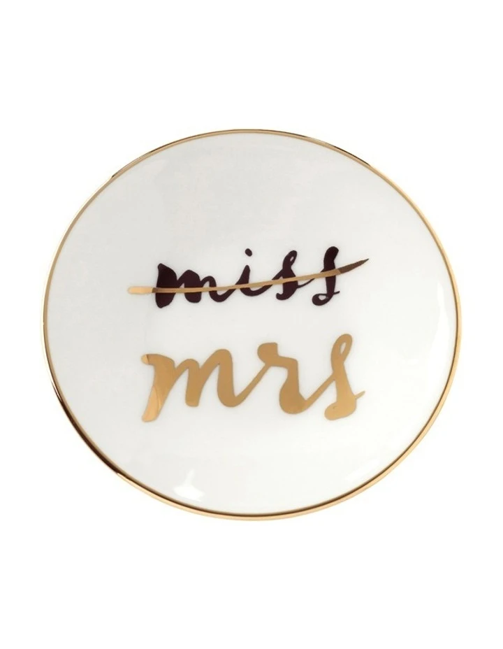 Perfect for the bride to be, the Bridal Party Ring Dish 9cm by kate spade new york features signature wit and whimsy with ‘miss’ crossed out and ‘mrs’ underneath. Designed with newlyweds in mind, Bridal Party includes trompe loeil-inspired illustrations and calligraphed phrases for an uplifting, whimsical look. Gold trims and accents provide pop in an otherwise traditional black and white palette.