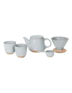 This set includes teapot, ceramic pour over, coffee scoop and 2 latte cups.