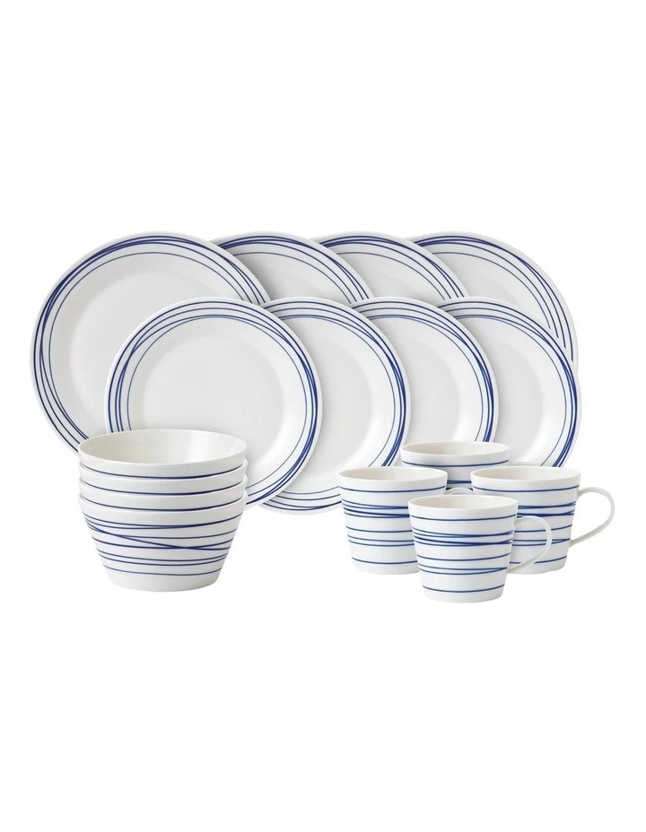 Capturing the gentle irregularities of sea shore textures and landscapes, the Pacific range adds the cool colours and vibe of the sea to any home. This 16-Piece Place Setting consists of 4 place settings and is made from porcelain, featuring a lines pattern which coordinates perfectly with other stunning accent items from the collection. This 16-Piece Place Setting includes the following components: 4 x Dinner Plate 28.5cm 4 x Side Plate 23.5cm 4 x Cereal Bowl 15cm 4 x Mug 390ml