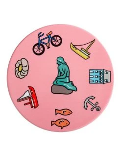 - Depicts iconic symbols of Copenhagen such as the Nyhavn buildings and sailboats