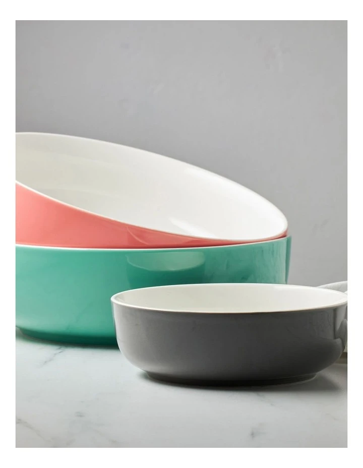 Bring something fresh to the table with these stylish additions to our popular Mezze collection. With a chip and dip, a cake stand, serving bowls and a divided platter, this stunning range has everything you need to complete your summer spread. Each piece features Mezzes contrasting textures, with white gloss interior surfaces and matte glazed exteriors. Available in three complementary colours jade, coral and charcoal these additions are perfect to mix and match with the rest of the Mezze range.