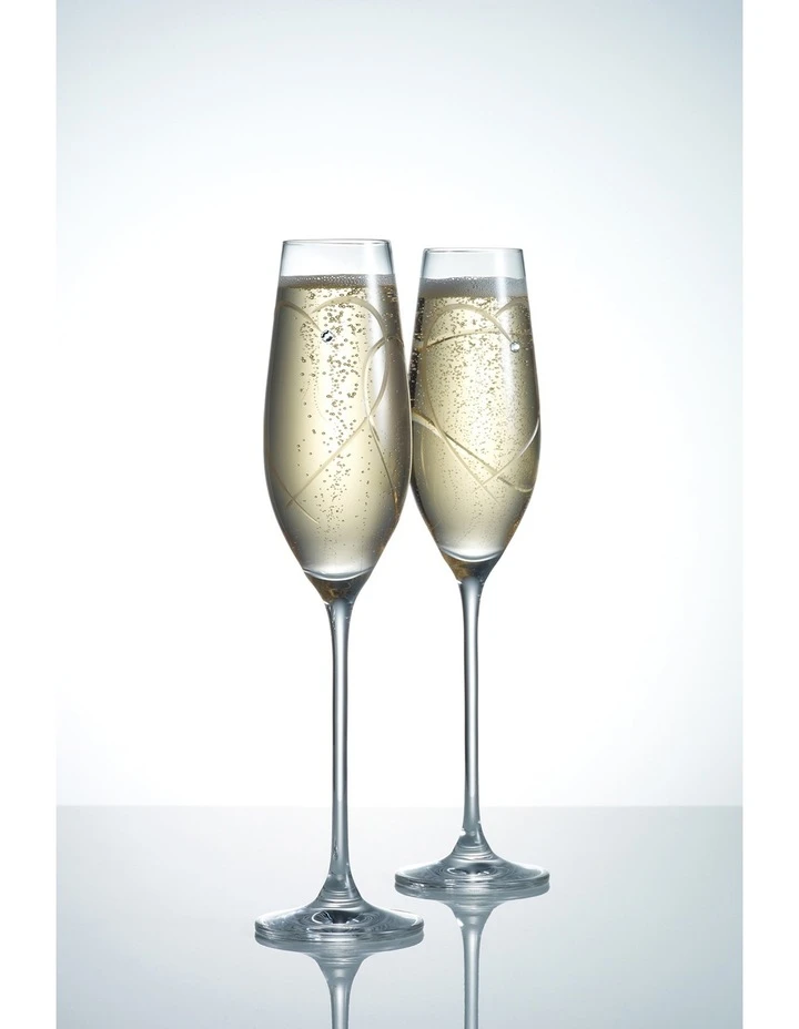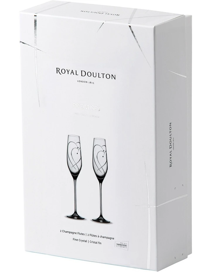 These beautiful crystal Promises Flutes feature an elegant, tall stemware design and are engraved with a gorgeous Two Hearts Entwined motif; truly representing the joining of two loves into one.