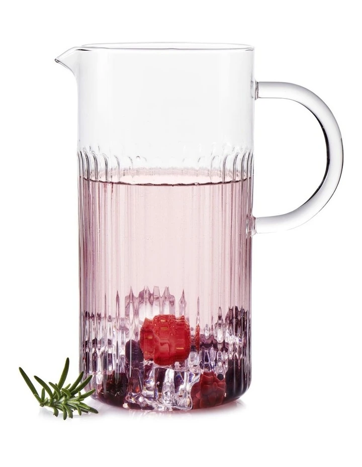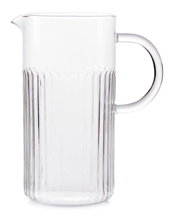 Made from borosilicate glass, this jug enjoys an elegant ribbed texture throughout in an elegant, minimalist shape.