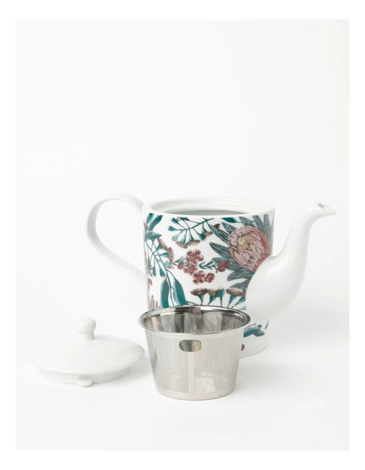 - Floral teapot with strainer