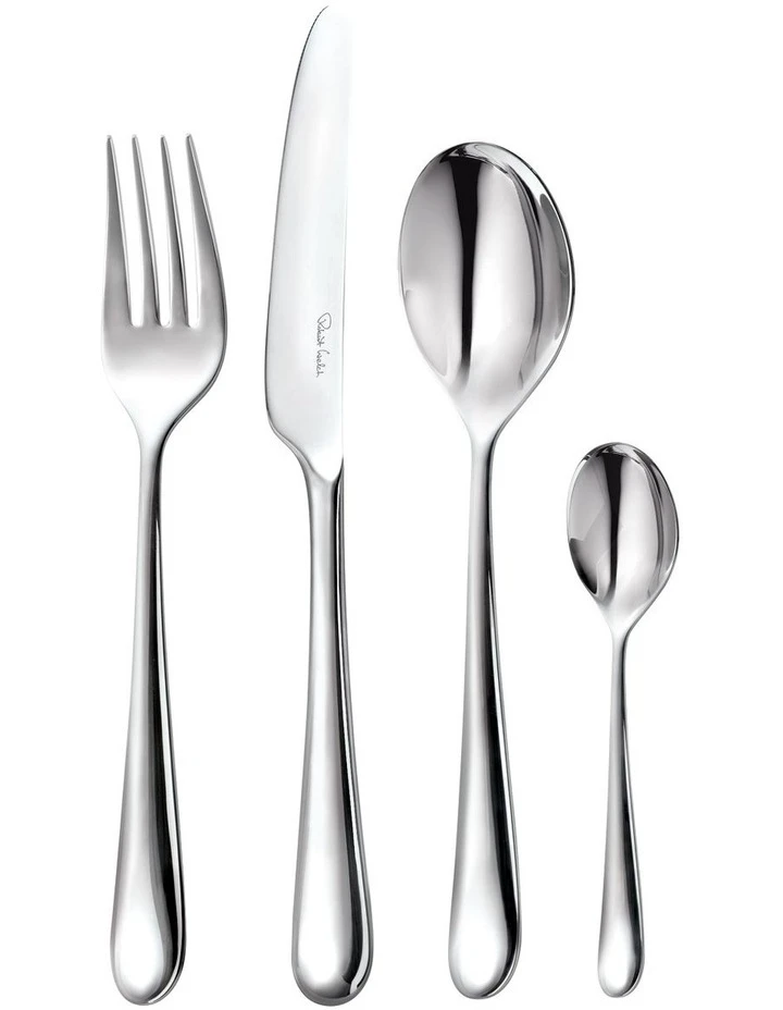 Kingham cutlery exhibits a clean and elegant profile and a contemporary classic aesthetic. Spoons and forks are made using the highest quality 18/10 stainless steel. Knife blades are made from specially hardened stainless steel to provide the finest possible cutting edge. All Kingham cutlery is available with a mirror finish, has a lifetime guarantee and is dishwasher safe. Consists of Table Knife (6), Table Fork (6), Soup Spoon (6), Teaspoon (6)