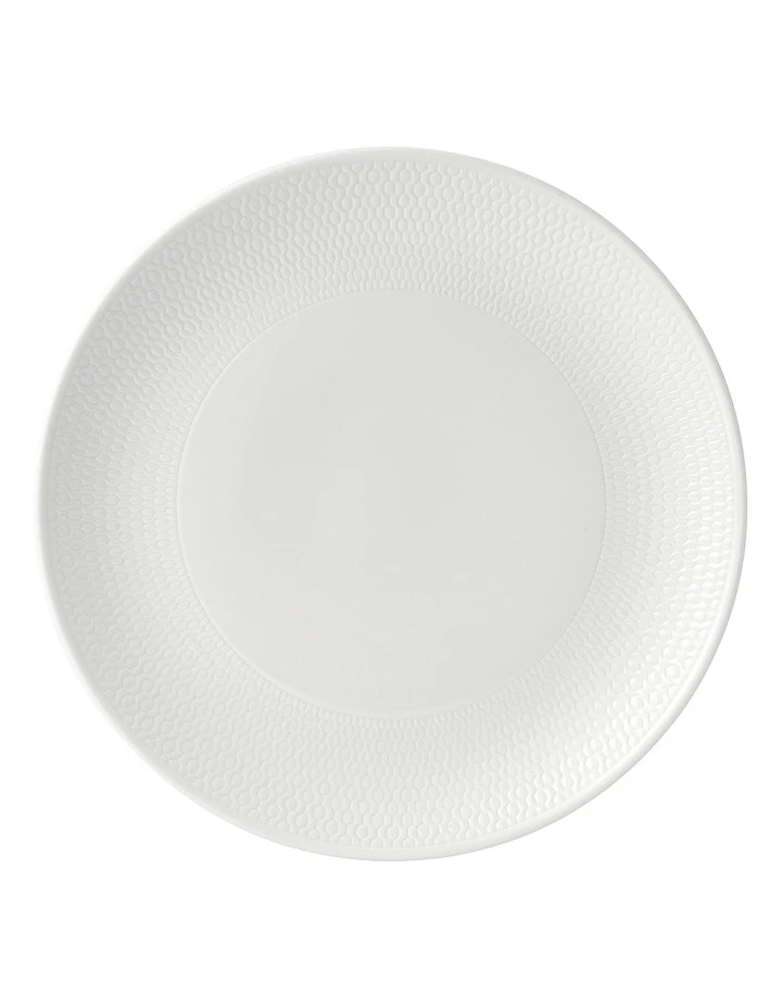 Contemporary and timeless this Gio 23cm plate features a deboss texture with a clean, white glaze finish that is unmistakably modern. Perfect for everyday dining as well as impressive entertaining. Inspired by the rich Wedgwood design archives, Gio is a simply stunning debossed repeat geometric pattern that acknowledges trends in interior styles which use linear and geometric structures to create form. This distinctively graphic design, allows for a relaxed yet refined dining experience.