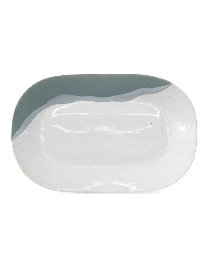Crafted from speckled pottery, this platter in blue embodies a calming overtone with its two-colour, hand-dipped aesthetic inspired by the sea break.