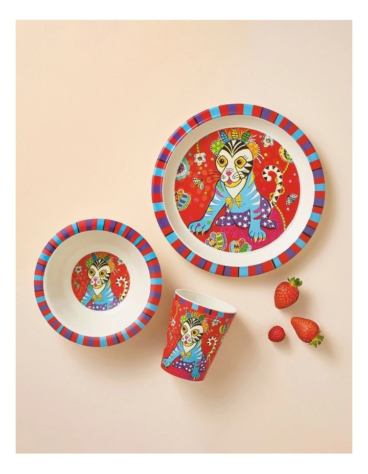 - Includes tray (26x21cm), bowl (13x4cm) and cup (225ml)
