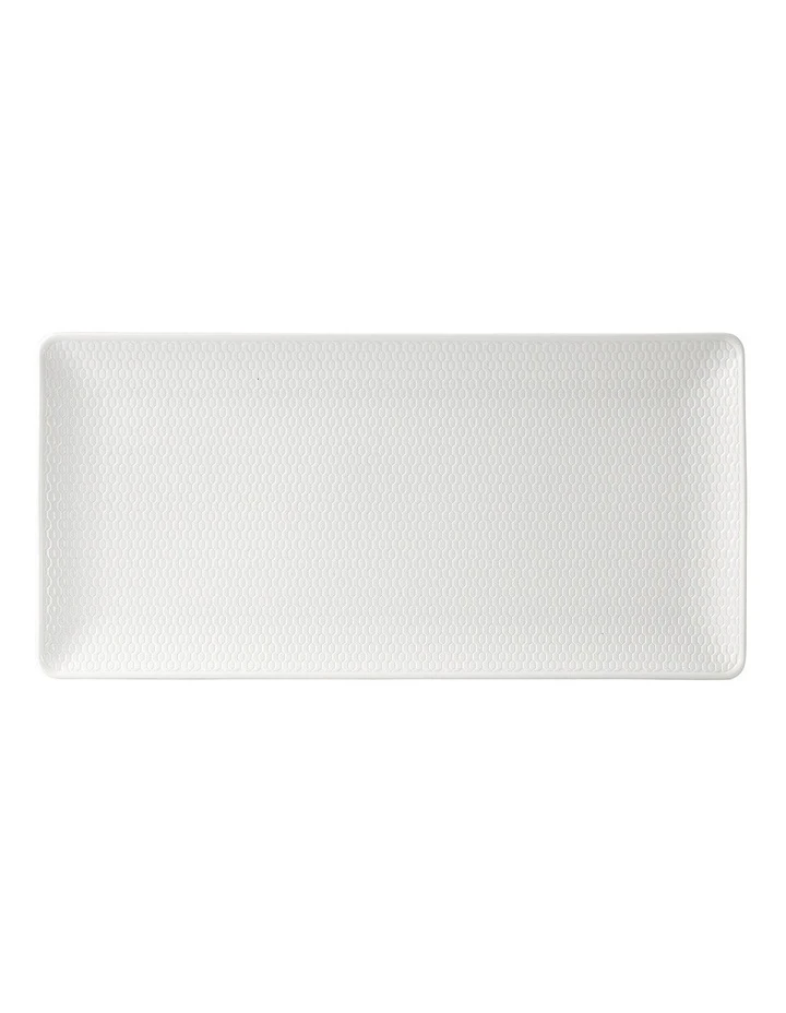 Contemporary and timeless this Gio Serving Tray features a deboss texture with a clean, white glaze finish that is unmistakably modern. Beautifully gift boxed making a great gift. Inspired by the rich Wedgwood design archives, Gio is a simply stunning debossed repeat geometric pattern that acknowledges trends in interior styles which use linear and geometric structures to create form. This distinctively graphic design, allows for a relaxed yet refined dining experience.