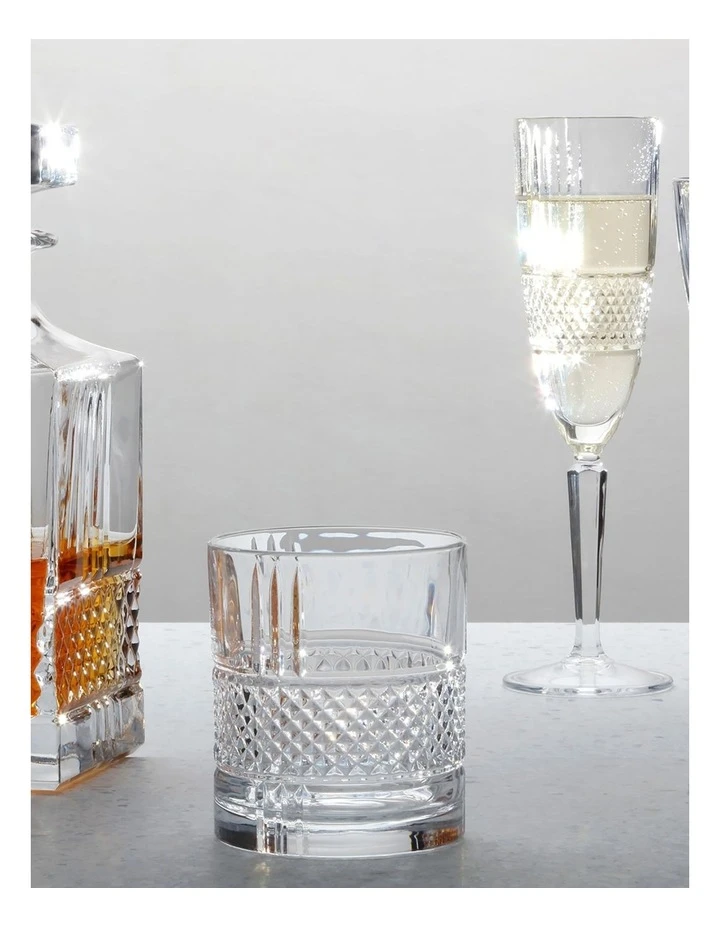 The Maxwell & Williams Verona range features an embossed diamond-cut band enhancing the Art Deco-inspired design.