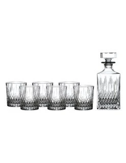 Earlswood features a classic diamond cut design with a modern twist that will work effortlessly in both traditional and modern homes, and is the perfect gift for loved ones. This set includes a decanter and 6 tumblers.