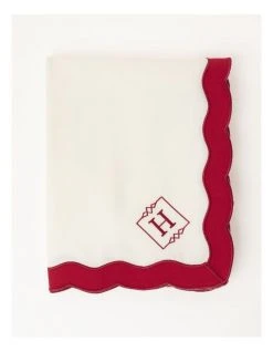 Heritage Florence Scalloped Edge Tablecloth in Red and White