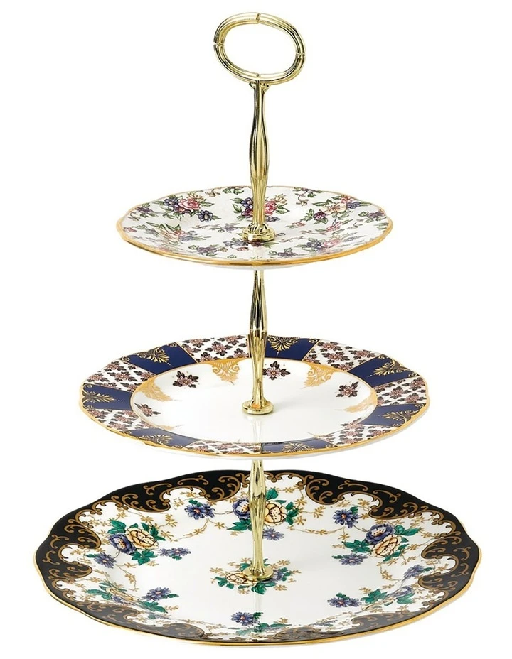 The 3-Tier Cake Stand – English Chintz, Regency & Duchess comprises three striking designs for an eclectic centrepiece at your afternoon tea. Featuring designs from three different decades – 1900, 1910 and 1940, each plate focuses on their specific colours and designs for an opulent and vintage-inspired piece. Perfect teamed with teacups, saucers and tea plates…plus your favourite cakes and savouries. Made from: Fine Bone China. Dimensions: Width: 27cm Plate, 20cm Plate, 16cm Plate. Care: Hand Wash Only, Not Microwave safe. Packaging: Gift boxed.