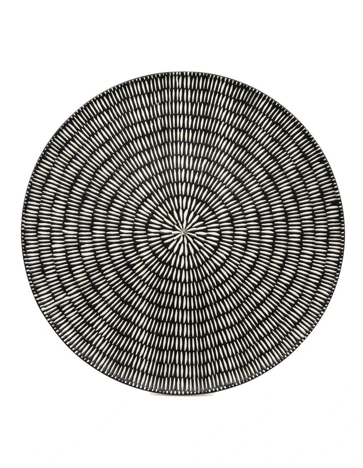 Shibori, earthy colours and eclectic forms and patterns combine in this screen-printed OSAKA round platter by Salt&Pepper.