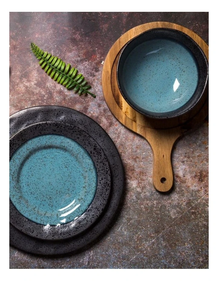 Lagoon is a dinner set like no other. Combining two different reactive glazing techniques produces a stunning contrast between the dimpled black rim and the smooth turquoise center. From a color and finish point of view, no two items are the same but when combined with handcrafted style the end result in tableware that is truly unique. All meals presented on Lagoon take on a distinctive new look of elegance and excitement.