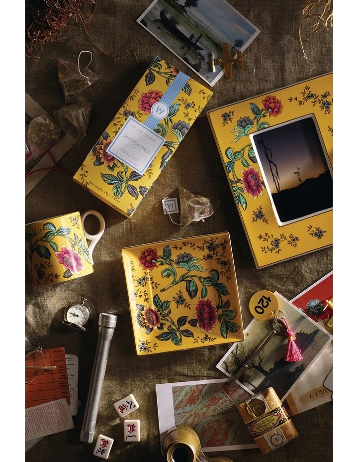 The Yellow Tonquin Mug Large is perfect for your favourite blend of tea and has been crafted from fine bone china. A sunshine yellow backdrop sets the context for beautiful florals. Presented in a Wedgwood blue gift box.