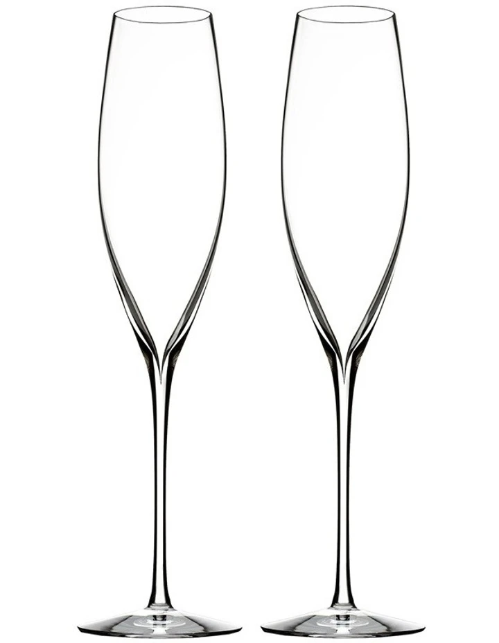 The Waterford Elegance collection is the pinnacle of elite fine wine and spirits enjoyment. This handmade, crystalline Classic Champagne Flute Pair is uniquely contemporary in design and deportment, with a clear, delicate bowl, striking deep V plunge, crisp rim, pulled stem and flawlessly modern profile.