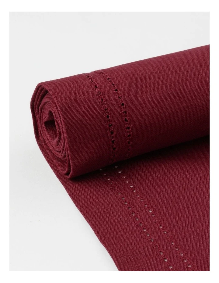 Heritage Elizabeth Hemstitch Table Runner in Berry