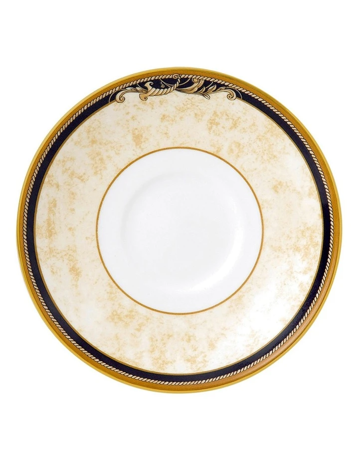 Inspired by the mythical ‘Horn of Plenty,’ the Cornucopia collection is characterised by designs featuring legendary creatures like unicorns and satyrs. All made from fine bone china whiteware and decorated with wide bands of ivory parchment, ribboned by dark navy, roped with an ochre accent and rimmed in lustrous 22-carat gold.