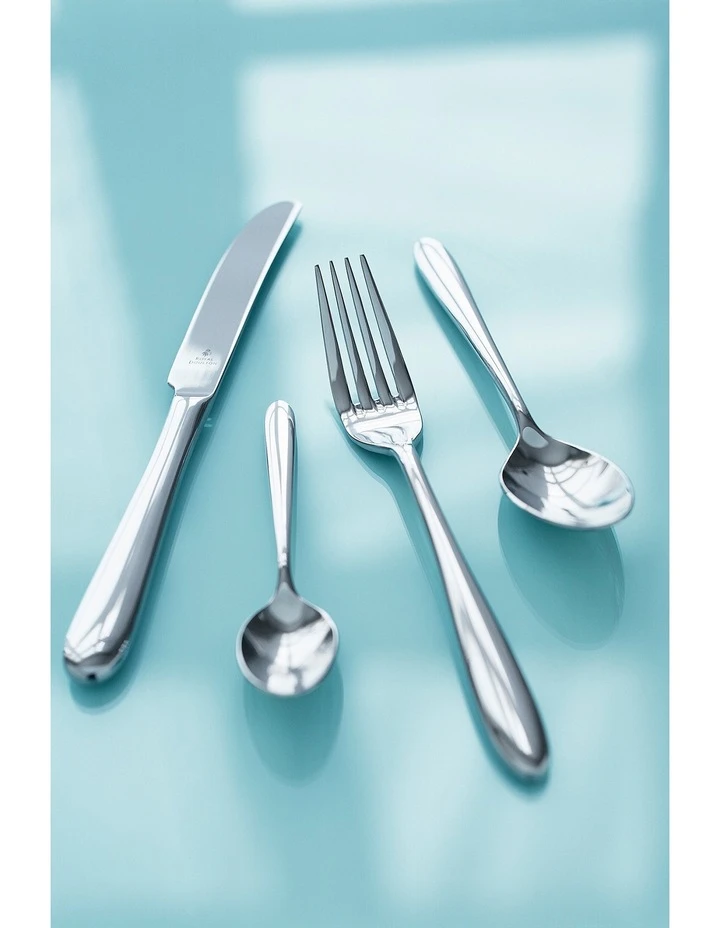 Royal Doulton Classics 56 Piece Boxed Cutlery Set – Royal Doulton Cutlery is made from 18/10 stainless steel and fits perfectly with Royal Doulton tableware. Truly timeless and exquisitely smooth, each piece in this set features a sleek curved handle and a lustrous polished finish. Durable for everyday use. 56 piece flock-lined gift-boxed set includes: 8 place settings of Dinner Knife, Entree Knife, Dinner Fork, Entree Fork, Soup Spoon, Dessert Spoon and Teaspoon.
