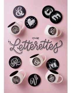 Wholesale ❤️ Maxwell & Williams The Letterettes Ceramic 10.5cm # Gift Boxed Round Coaster Black 🌟