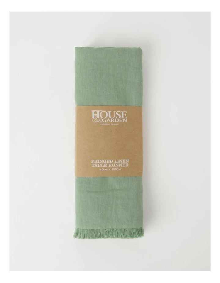 Australian House & Garden Fringed Linen Table Runner – Eucalyptus