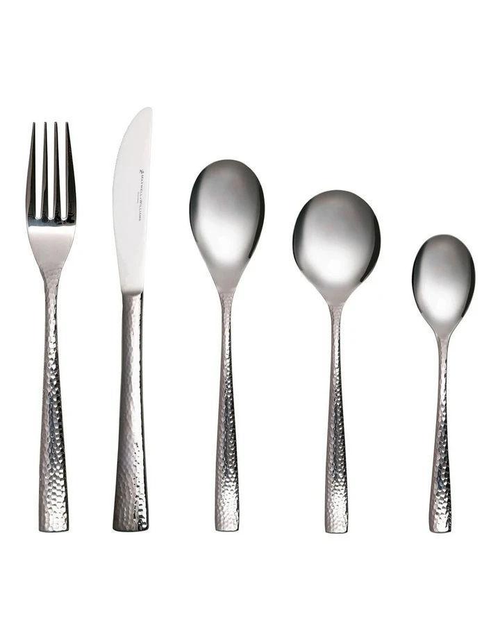 This 36-piece cutlery set from Maxwell & Williams’ Wayland collection is a welcome addition to any table setting needing a revamp. Each piece in this set features a modern tapered handle with a hammered metal finish. The design gives each piece a textured feel and gives off a lovely reflection of light.