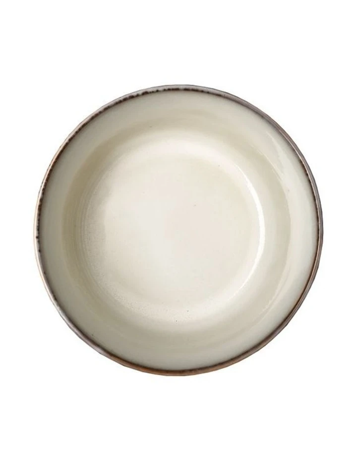 Jamie Oliver branded Reactive Glaze 12pc Dinner Set with wide flat rim dinner plate and side plate and standard cereal bowl.