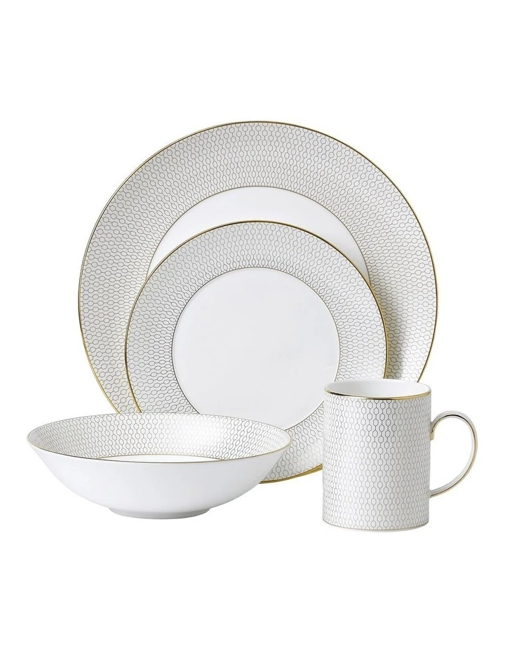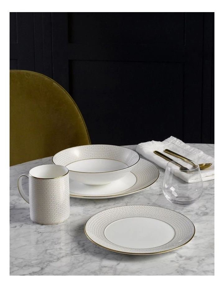 Combining luxury and contemporary style, Wedgwood’s Arris collection showcases an intricate hexagonal gold pattern with an ‘Arabian Nights’ design influence on fine bone china including opulent gold rims designed for stylish dining for any entertaining occasion. The 4-piece set with the superior strength and amazing translucency of fine bone china includes a dinner plate (23cm), side plate (20cm), cereal bowl and mug with all pieces designed to fit perfectly within a stylish, contemporary home or to offer as a special gift. The innovative gold pattern makes Arris a luxurious addition to the table top which can also be easily combined with classic white collections for a more relaxed look while still capturing the sophistication that has been synonymous with Wedgwood tableware for 260 years.
